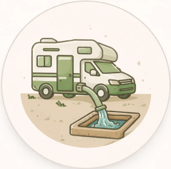 Lozen vuil water en chemisch toilet, vullen vers water. Gratis voor onze gasten.